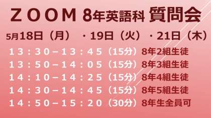 8年生 ZOOM 英語科質問会 連絡