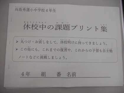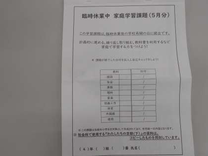 先日,ポストに入れさせてもらった封筒に,今週と来週の2回,「希望制 学習相談」を設けるプリントが入っていたかと思います。今までに渡した課題は全部で3冊。(とじてある課題の冊子が3冊あると思います。下の写真を見てください。)