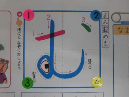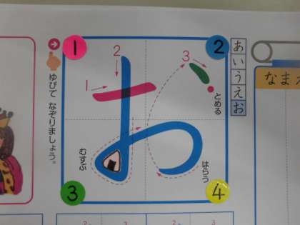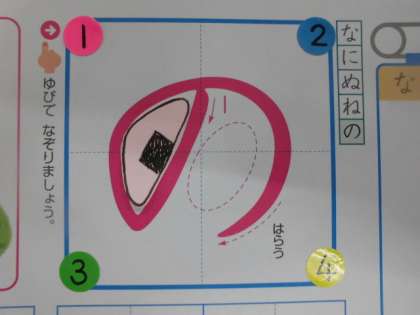 さて,ひらがなのがくしゅうは すすんでいますか。きょうは,「お・む・の」です。それぞれの もじのなかに,「おにぎり🍙」が かくれています・・・さぁ,みつけられましたか?