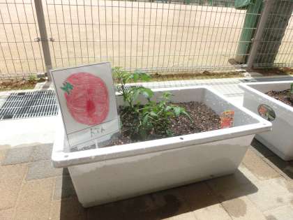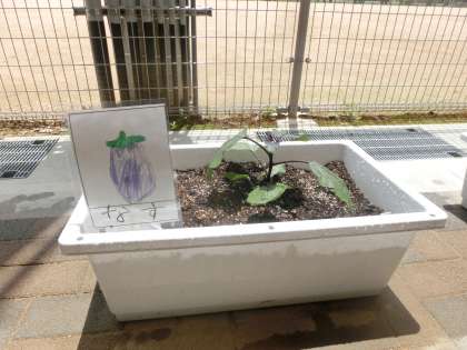 学校がお休みのあいだも,毎日すくすく育っている野菜たちに「かんばん」を立ててあげました。