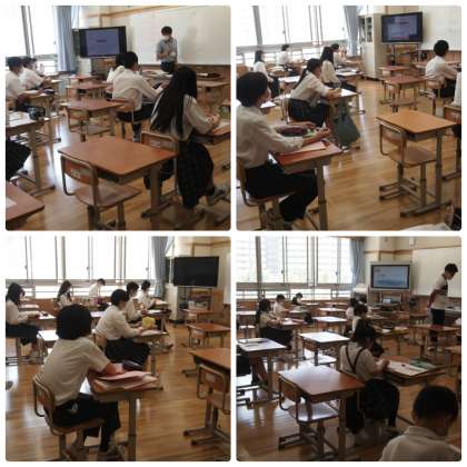 今日はA班の登校日でした。今週いっぱいは午前中です。1年生の教室では,人数が少ないなあと感じたものの,9年生になるとそうは感じません。同じようにクラスの半分しか登校していないのですが・・・。