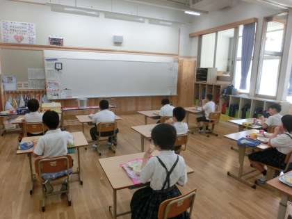 給食の時間は,前を向いておしゃべりをせず静かに食べる約束をしました。