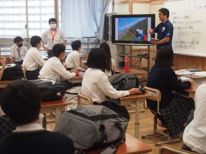 写真を見せながらの説明でしたが,「なんでやましななん?」と「やましな,やましな」と何度も間違って言ってましたね。そのたびに「やまなし!」と突っ込みが入っていました。そんなこともあって,本当は残念な気持ちも大きいのかもしれませんが,和やかに学活が行われていました。
