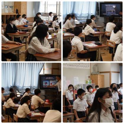 本日午前中,京都市教育委員会生徒指導課より現役の警察官の原田課長をお招きし,学級ごとに非行防止教室を実施いたしました。中学生が関わりそうな犯罪(非行)を取り上げて,歌や写真なども用いながらお話をしていただきました。実際にあったいじめの話や,なりすまし等SNSでのトラブル,ワンクリック詐欺等々,中学生が巻き込まれそうなことばかりで45分があっという間に過ぎてしまいました。ここ数年は,ゲームの課金に関わるトラブルや薬物についても話がされるようになり,そういった話がテレビの世界だけの話ではないことを身につまされました。