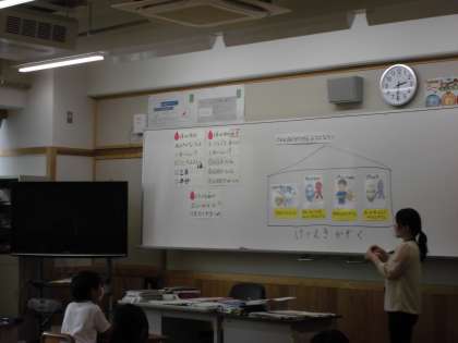 紙芝居をつかったり,血のクイズをしたりして,血液のはたらきについて知りました。