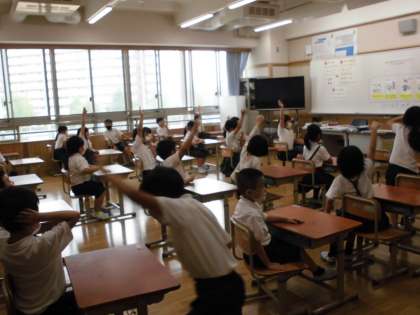 「擦り傷のときはどうしたらいい?」「鼻血のときはどうする?」と先生が聞くと,みんな「水で洗う!」「ティッシュで血をおさえる!」「鼻をつまむ!」とたくさん答えていました。自分で簡単な手当てができることは感染症予防のためにも,とても大切です。ぜひマスターしてくださいね。保健室に来る前も水で洗ったり,鼻をつまんで止血をしたりしてから来ましょう。