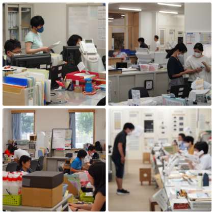 「学校の先生は夏休みが長くていいね」などと時々言われることがあるのですが,夏休み期間中も教職員たちは忙しく動いています。写真は8時50分くらいの職員室の様子です。夏休みの教職員の仕事の様子や部活動の様子などを数時間おきにお伝えして,学校というものを少しでも理解していただけたらと思っておりましたが,結局ホームページのアップがこの時間(13時00分)となってしまいました。8時50分の写真撮影から,この時間まで,他の様々な用件がどんどん加わりこの時間になってしまったことをご理解いただくことで,教職員のバタバタした動きを想像していただけるかもしれません。