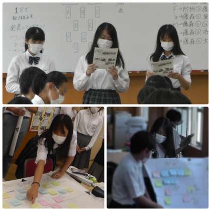 昨日午後,藤森中学校で実施された伏見支部生徒会交流会に,本校生徒会より3名が参加をしてくれました。「生徒会本部として1年間やってきたこと」をテーマにしたワークショップ型の交流会でした。自分の学校の取組を紹介することで,他の学校に自慢できること,これから取り組みたいことが整理できたのではないでしょうか。また,他校の取組の中ですぐにでもマネできそうなことがあればぜひ挑戦してみてください。