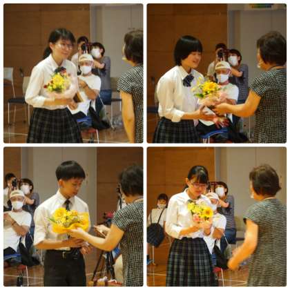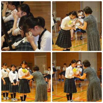 7・8年生からのサプライズ演奏には,私も泣かされてしまいました。しっかり先輩の意志をを引き継ぎ,7・8年生には頑張って欲しいと思います。9年生の皆さん,お疲れさまでした。そしてありがとうございました。まだまだ秀蓮での学校生活は続きます。皆さんの活躍を期待しています。