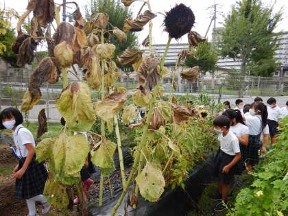 ヒマワリは見上げるぐらい高くなり,ホウセンカの茎もとても太くどちらの植物も観察し甲斐がありました。
