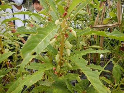 ヒマワリとホウセンカの観察に行きました。