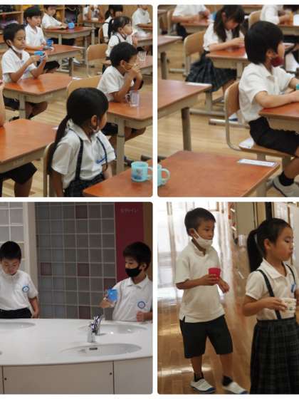 先週から1年生もフッ化物洗口を実施しています。週1回、1年生は基本的には木曜日の実施です。今日はその2回目。上手にできていました。虫歯のない、強い歯になりますように!80歳の時に20本の歯を残すぞ〜。先が長い話ですが…。