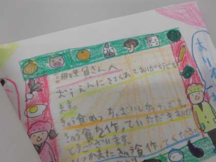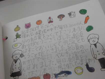 感謝のメッセージを集め,5年生が代表で渡してくれました。