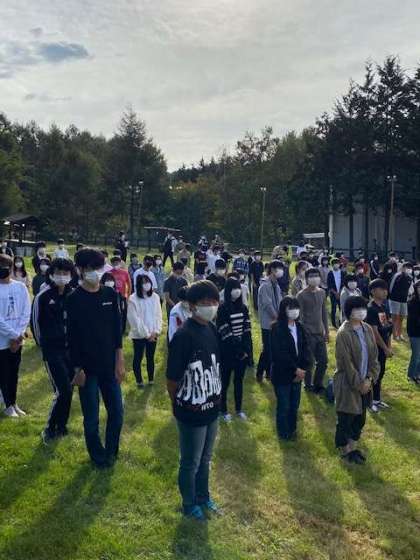 離村式の様子です。お世話になったペンションのオーナーさん達に感謝の気持ちを伝えました。お世話になりました。