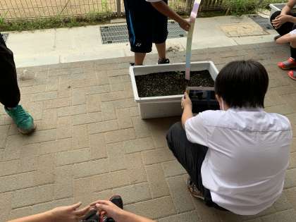 各チーム,リーダーが「写真撮りたい人〜?」「ものさし持ちたい人〜?」と低学年に聞いてくれます。とっても頼もしい。