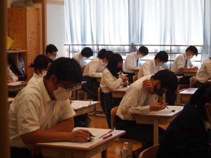 本日の音楽を最後に総括考査が終わりました。「やっと終わった〜」と声が聞こえてきそうですが,9年生はこれがスタートのようなものです。本日の午後,高校の先生に来ていただく進路説明会には保護者の方と一緒に参加します。自分の未来を切り拓く第1歩!第3回の総括考査は終わりましたが,次の第4回,そして入試に向けて学習を継続してください。