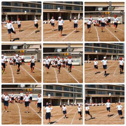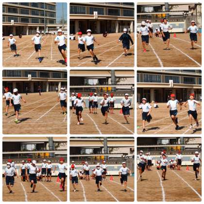 50m走の写真の後は,バトンパスの練習の様子です。