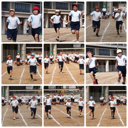 5年生も今年は教科担任制を敷いています。普段の体育の授業は杉森先生がクラスごとに指導していますが,今日は学年体育の形ですので,学年の先生も加わってティームティーチングでの指導を参観していただきました。バトンパスの練習があったり,ふりかえりの時間があったりで普段の授業のスタイルは変えることなく参観授業を計画いただきました。リレーは1回目と2回目でタイムをあげることを目標に取り組むなど,体育大会ではできない,学年体育参観だからこそ可能な形にして見ていただきました。写真を連続してアップします。どうぞご覧ください。