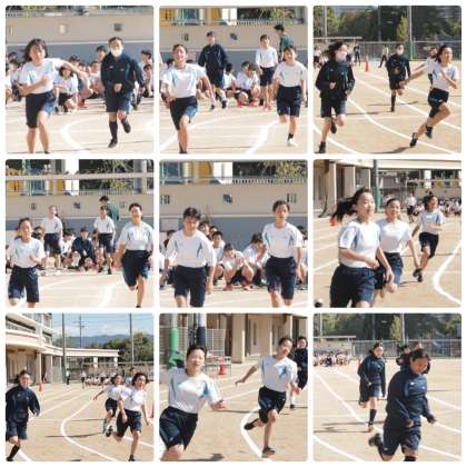今日は少し風も冷たく,運動をするには絶好の日になりました。7年生は徒競走,台風の目,そして選抜選手によるクラス対抗リレーといった種目です。体育大会の定番の種目を体育参観でも選んでくれました。写真を連続でアップします。