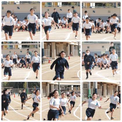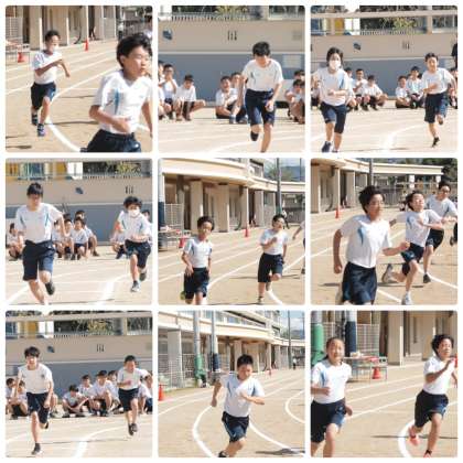 前期課程では直線での短距離走でしたが,7年生はトラックを使った徒競走です。