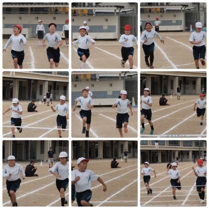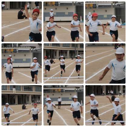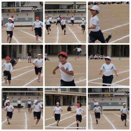 開会式の後は50m走。最後まで全力で走る!この種目では,それが「背中で語る!」ことになります。4年生の背中は十分語っていたと思いますよ。