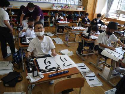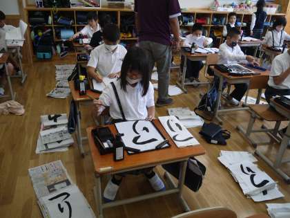 3年生になり,初めて使った毛筆にもだいぶ慣れ,