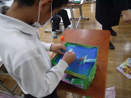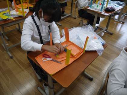 4年生は,図工科で「コロコロガーレ」という工作をしています。