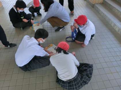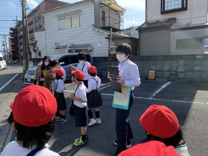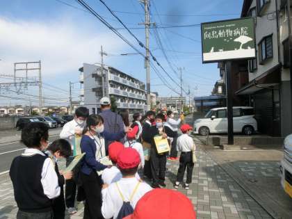 道中ではお店や病院,公共施設を見つけてくるという学習で,それぞれのグループがたくさんのお店や施設を見つけることができました。