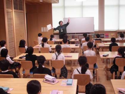 今日は,学校司書の細矢先生に「せかいいちのはなし」を読聞かせしてもらいました。