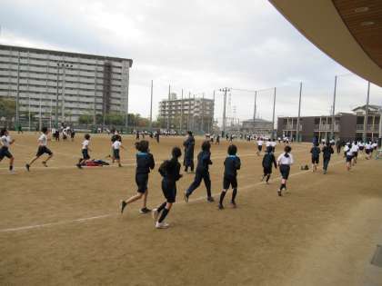 今日は事前に参加承諾書を受け取って参加した5・6年生が元気に朝の走りに挑みました。