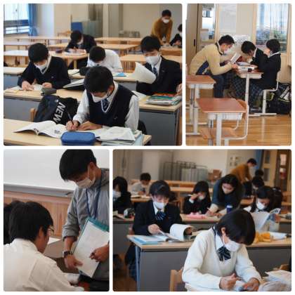 11月19日(木),11月20日(金)の第4回目の総括考査を前に,後期課程では土曜学習会を行っています。前回,前々回より7年生・9年生の数が増えたような気がします。7年生は,前期課程の時に比べ,テストの範囲や難易度が違い,テスト前の学習の大変さや大切さに気づいたこともあるかもしれません。9年生は言うまでもなく,進路への意識の表れでしょう。総括考査に向けての気持ちの入れ方は学年によって異なるのはあって当然かと思います。こちらからすれば,目の前の壁を精一杯努力して打ち破ることに挑戦して欲しいという気持ちはどの学年に対しても同じです。この後,家に帰ってから,そして明日日曜日の家庭での頑張りを期待しています。