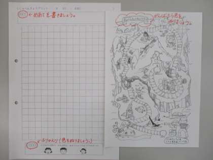 めあてとふり返りを意識してできるように,写真のような「じしゅべんきょうプリント」を用意しました。