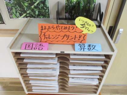 そこで!2年生の教室の前にチャレンジプリントを用意しました!