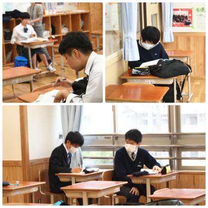 写真は朝8時過ぎの8年・9年の教室の様子です。さすがヴィジョンステージ。将来を見据えて,総括考査の直前の勉強に集中してます。