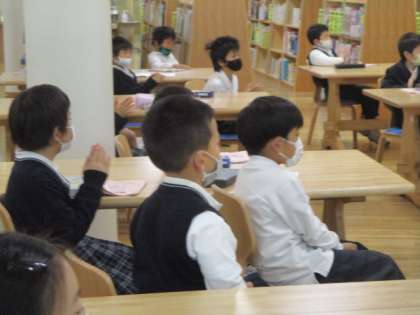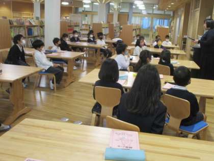 図書室で,細矢先生に本の読聞かせをしてもらいました。