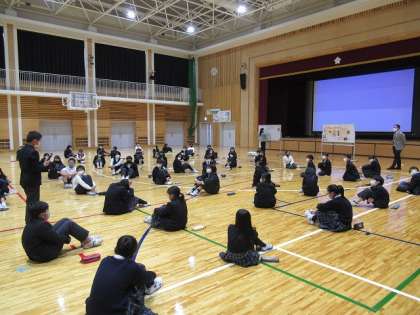 5年生は,第一体育館で人権学習を行いました。昨年度まで本校で日本語指導をしていただいた新田先生をゲストティーチャーとしてお迎えし,「中国帰国者について知ろう」というめあてで学習しました。講話やビデオの視聴を通して,中国帰国者や外国につながりのある人たちの正しい歴史や困りを知り,考えを交流しました。