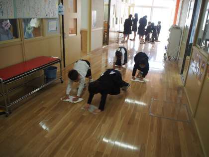 1年生も上手にほうきや雑巾を使って掃除ができるようになっています。