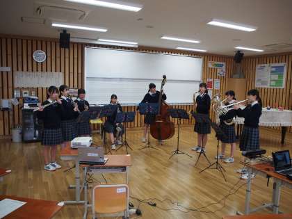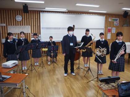 年末にアンサンブルコンテストで銀賞を受賞した吹奏楽部の演奏でスタートしました。