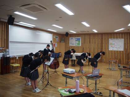 リモートでしたが,各教室に美しい音色が響き渡り,文化的な雰囲気の中3学期がスタートしました。