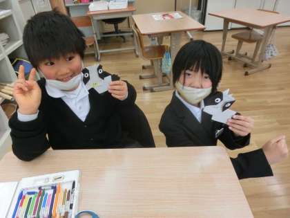 生徒たちに問いかけると「知ってる!牛でしょ!」「その前はねずみだったよ」と正解の答えが返ってきました。…ということで,今日の自立活動「折り紙」では「牛」を作りました。少し難しかったけど,みんな上手にできました。