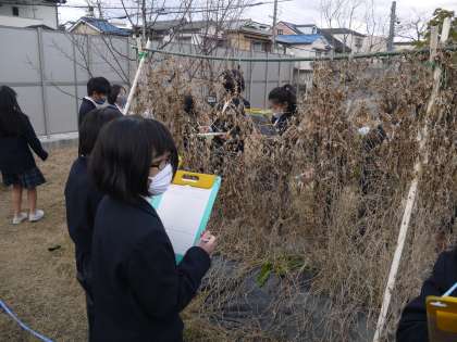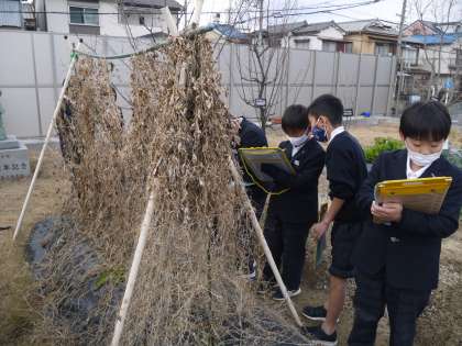 3学期最初の理科の学習で,冬の植物の観察をしました。