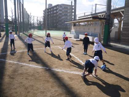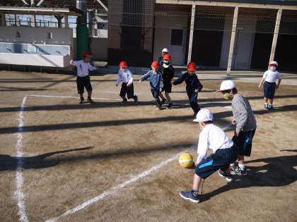 1年生は3学期初めての体育で「ころがしドッジボール」に