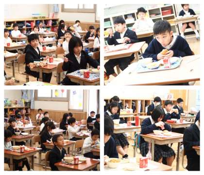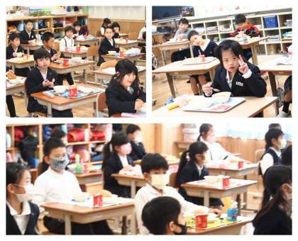 緊急事態宣言が発出され,危機感を高め感染症対策に取り組んでいるところ,気になる給食時間の様子を覗きに全教室を回ってみました。「喫食中は言葉を発しない」「話す時にはマスクを着ける」ということを徹底して給食の時間が進んでいました。つまり,シーンとした状態で食べているということです。家庭内感染が感染経路では一番多く,食事を共にすることがその大きな理由と言われていますので,本校でも給食時の対策には特に気を遣っています。事前のアルコール手指消毒,教職員のみで行う配膳,同一方向を向いての喫食,喫食中の会話の制限等これまでの取組を徹底して継続しております。