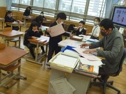 生徒達は少しびっくりした様子でしたが,泣く子はおらず,みんな嬉しそうな表情をしていました。(※鬼の姿でいつも通り接するというスタイルで,なかなかシュールな光景でした。)朝学活では節分の行事について少し学習もしました。節分クイズで盛り上がって朝から元気いっぱいの2年生でした!