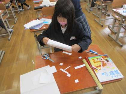 最初に,1枚の画用紙を使って,はこを作りました。
