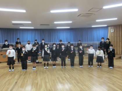 「9年生を送る会」にむけて1〜8年生で合同練習をしました。