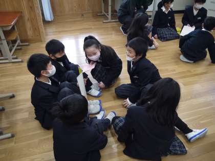 5日の中間休みに,ベーシックステージでたてわり活動を行いました。今年度は,コロナの影響で活動がなかなかできませんでしたが,3月にグループで集まれたことはとても良かったです。ベーシックステージのリーダーである4年生が,1年生を迎えに行き,各教室へ移動します。それからグループごとに自己紹介をして,顔と名前を確認しました。