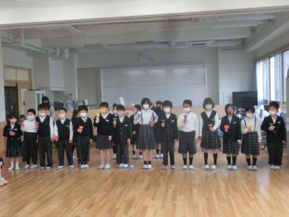 3月5日(金)1組の卒業生を送る会がありました。「9年生がいなくなるのはとてもさみしい」と言っていた子どもたちですが,9年生との楽しかった日々を思い出しながら「あ・い組」からはミュージックベルの演奏と感謝の言葉,「う・え組」からはコントや9年生クイズをプレゼントすることができました。9年生の秀蓮での学びを振り返るムービーでは,9年生と下級生が一緒に学習する姿が思い出され思わずウルっときてしまいました…。1組で学んだことを活かして,9年生それぞれが新しい場所で自分らしさを見失わずに,活躍してくれることを願っています。