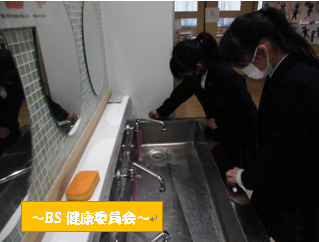 そして,「石けんボトルぴかぴか大作戦」と称して運動場,3階,4階,5階のあわ石けんのボトルをメラミンスポンジでピカピカにしました。綺麗になったことに気づいていましたか?1階と2階はBS健康委員会がピカピカにしてくれました。みなさんがより一層,積極的に手を洗ってくれるようになれば嬉しいです。