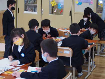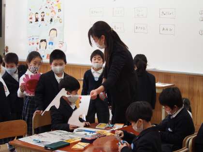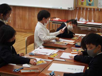 1年生の教室を覗くと,とっても楽しそうに図工をしていました。